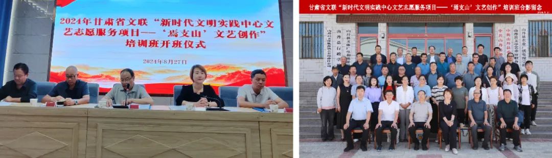 为深入学习贯彻习近平新时代中国特色社会主义思想,贯彻落实党的二十大和二十届三中全会精神,深入学习贯彻习近平文化思想,落实中国文联、省委省政府有关文艺志愿服务的部署要求,8月27—29日,2024年甘肃省文联“新时代文明实践中心文艺志愿服务项目”——文艺创作培训班在民乐县、山丹县成功举办,省作协、省剧协、省书协知名艺术家和省文联文艺指导和维权处负责同志,民乐县、山丹县有关领导参加培训班相关活动。