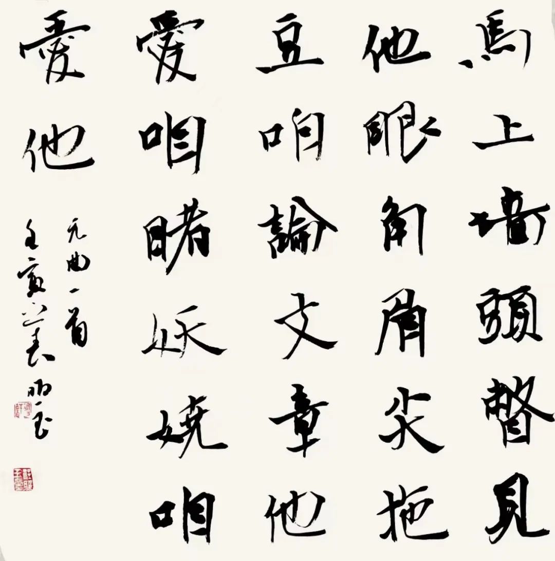 郎照玉告诉我,今年他自己的临帖目标并不明确,我写我心,任凭直觉和感觉指引。但我要说的是,古人留给我们的经典太多了,我们在自己有限的时间里要“贪婪”的去学习,至于收获,能得到多少算多少,调整好自己的心态最重要,不一定抓住某一帖去死临一定的时间,非要得到什么,凭自己的喜好所为。“所以,我今年的行楷就这个样子了,至于其他书体,目前还没有其他想法,只能随着自己的书写状态慢慢摸索了,至于结果,书肇自然。”郎照玉这样告诉我。其实我觉得待过完今年以后,或许他自己的观念又有所改变。待多年以后自己真正静下来、沉淀下来时,再回头看看自己走过的习书道路,他会说某某书体、某某碑帖自己曾经都尝试过,而且还留有证据,我想,那就没有辜负我们这个时代和自己的习书时光,我期待着。(作者:后小泉。)