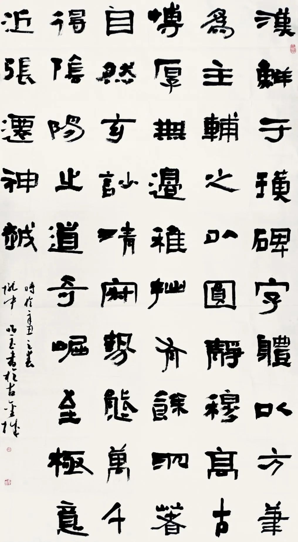 在理论上,他计划把从2008年以来发表在《中国书法》《书法报》《书法导报》等报刊上的论文、评论、散文、习书心得等90余篇汇集成册,尤其是通过对不同阶段习书心得的梳理,在不断的肯定和否定当中理性、冷静思考,找到暂时的落脚点。我也深知,书法到一定阶段在过了技法、创作关后,更多的是靠文化的滋养和支撑,这也养成了他每天坚持读书的习惯。自从2019年离开教育系统后,他在书法上更多的倾向于和成人的学习、交流。几年前他老师给他讲,和成人交流书法,就要交流书本上和百度上搜不到的东西,起初他不懂,现在才明白交流的就是个人的习书心得和文化。所以,不管怎样,临帖是他不断实现自我肯定和否定的唯一途径。他也计划把从2012年开始到今年整整十年《书法导报》“经典精临”栏目刊发的他每年临摹一种碑帖的心得、临摹和创作作品汇集成册,在自我不断反思中认真找差距。我想,有了如上做法,他就能基本认清现阶段的书法状态,在坚持“我写我心”的同时,为以后自己在书法上找到更好的落脚点打好基础。
