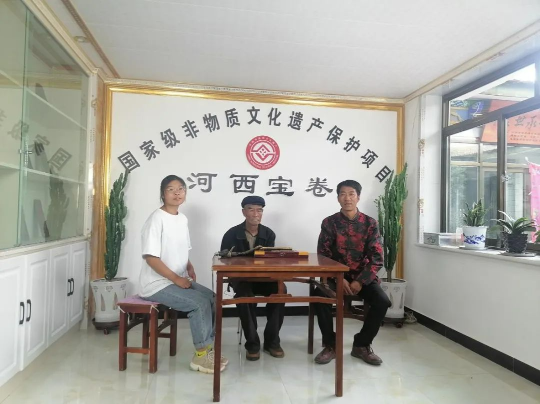 河西宝卷国家级传承人代兴位、省级传承人代继生、代继生的女儿祖孙三代念唱河西宝卷